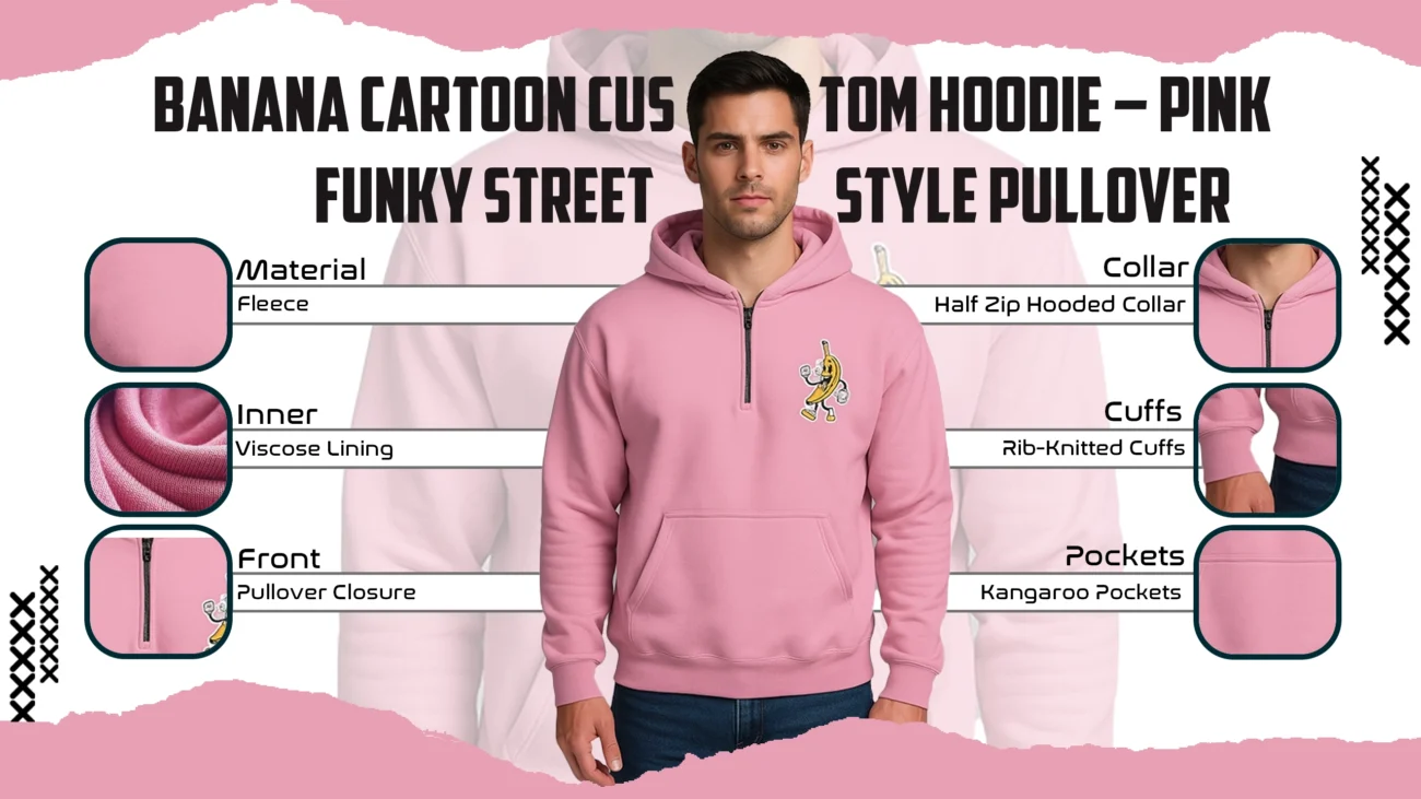 Banana Cartoon Custom Hoodie – Pink Funky Street Style Pullover