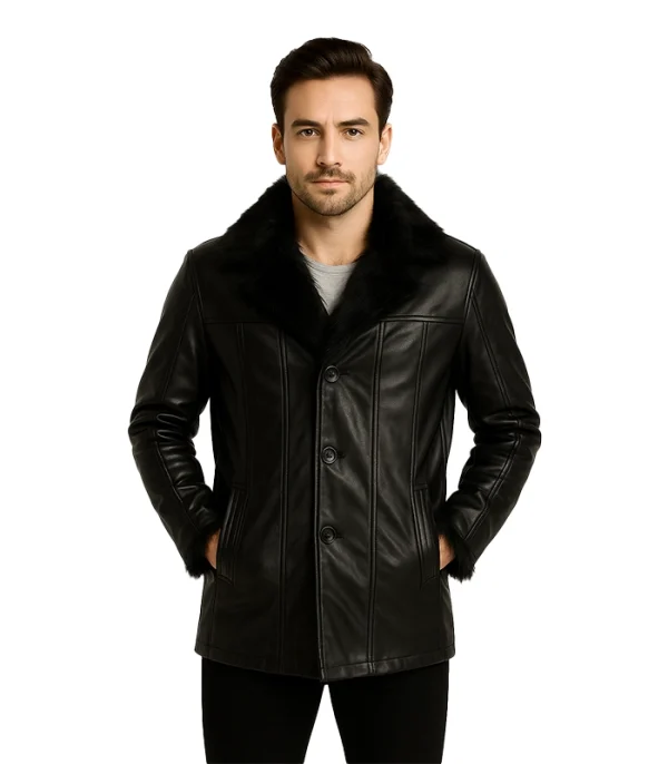 The Furcliff Black Leather Coat is designed for men who require a functional layer that commands respect without being loud. Most fur coats use bulky, unrefined patterns; we engineered this piece with **Vertical Rib-Stitch Architecture**, giving the torso a clean verticality that slims the midsection while broadening the shoulders.