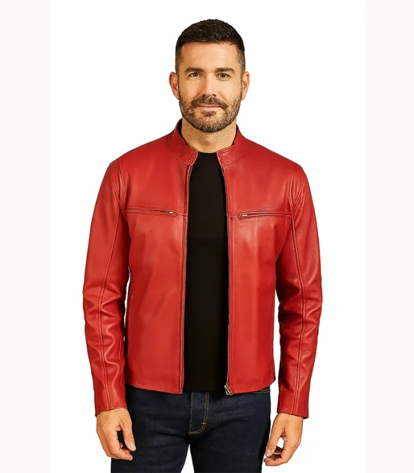 The Ionic Red Leather Biker Jacket is designed for men who require a functional layer that commands respect through subtle aerodynamic detail and bold color. Most red jackets use thin, synthetic dyes; we engineered this piece with a high-saturation grain shell that maintains its structural integrity, ensuring the clean vertical profile stays sharp whether you are active or in a professional setting.
