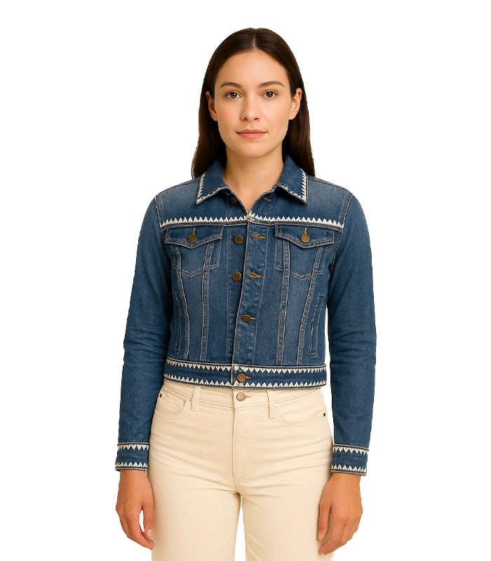 The Kasey Embroidery Detail Denim Trucker Jacket is designed for women who require a functional layer that commands respect through technical utility rather than aggressive hardware. Most denim jackets use thin, low-density materials that lose their shape; we engineered this piece with a heavyweight technical shell that maintains its structural integrity, ensuring the clean vertical profile stays sharp whether you are active or in a professional setting.