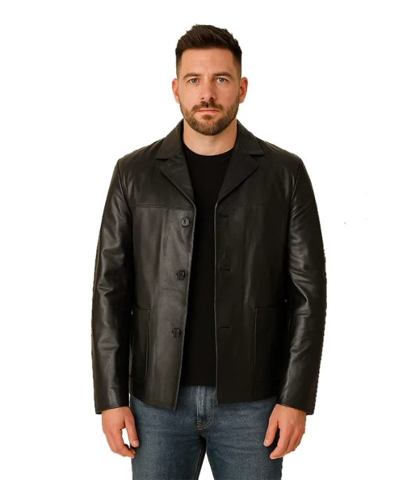 We utilized a **Symmetric 3-Button Closure** to provide a balanced visual profile that elongates the torso. This is not just cosmetic; the high-stance button layout creates a secure air-lock across the core, preventing drafts from penetrating your shirt or sweater. This formal design provides a more authoritative alternative to the minimalist lines of our Men’s Cafe Racer Jackets.