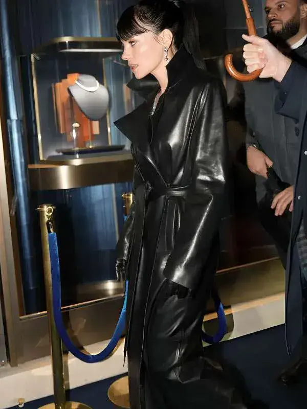 Step into a sharp, confident look with the PFW 2026 Lily Allen Black Leather Coat. Inspired by the Paris fashion week moment where Lily styled a glossy black leather trench, this coat brings that clean, high-street vibe into your daily wear.