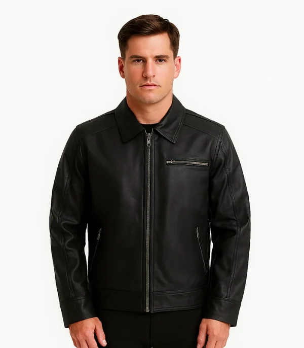 We installed a **Reinforced Shirt-Style Collar** that is engineered to stay flat against the shoulders. Originally designed for high-end executive wear, this feature now serves as a sharp visual frame for the neck. This integrated design provides a more sophisticated look than the racing collars found on our Men’s Cafe Racer Jackets.
