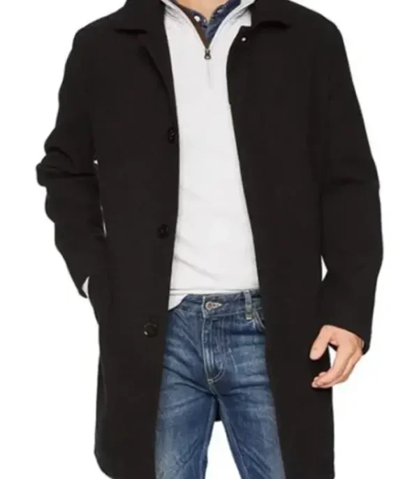 This Men’s Black Wool Car Coat is the modern professional’s armor. Unlike full-length Trench Coats that can drag on the ground, the Armando utilizes a **3/4 Length Cut**. This specific length provides thermal coverage for your vital organs and thighs while maintaining complete freedom of movement for walking or driving.