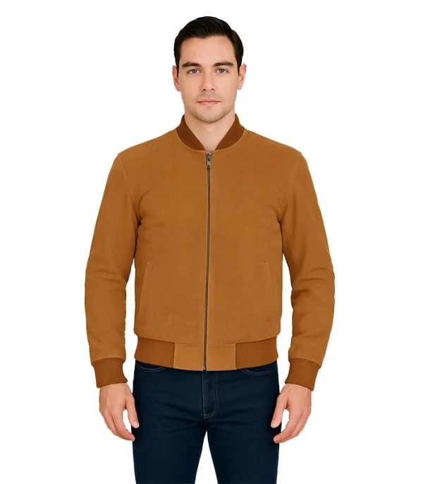 This Men’s Bomber Light Brown Suede Jacket is not a mass-market layer. We handcraft this technical chassis to provide a sharp athletic silhouette that commands respect.