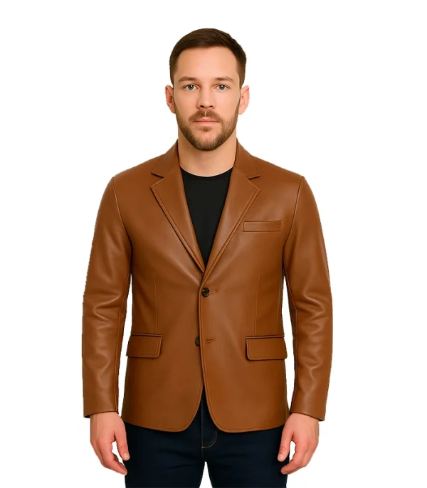 The Men’s Cognac Brown Leather Blazer Jacket is designed for men who require a functional layer that commands respect through technical texture rather than aggressive hardware. Most fashion blazers use thin, low-density materials; we engineered this piece with a heavyweight lambskin shell that maintains its structural integrity, ensuring the clean vertical profile stays sharp whether you are in a professional environment or in transit.