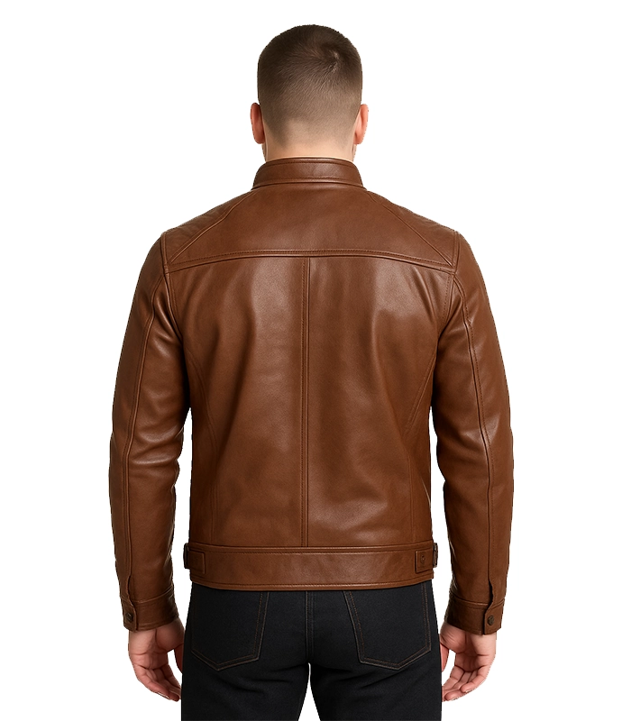 An easy front closure using YKK zipper makes leather jacket brown easy to wear. The strap collar gives it a classy look. The embossed shoulder work makes it look high-end. Designed to suit all seasons, it is perfect choice for your wardrobe.