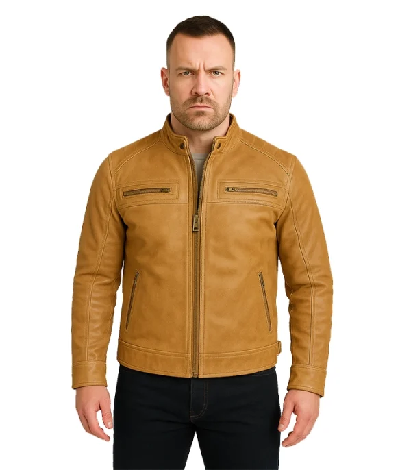 The Men’s Distressed Camel Brown Café Racer Leather Jacket is the definitive outer layer for the modern vanguard. We focus on structural integrity, ensuring this chassis delivers a sharp profile without the flimsy feel of mass-market fashion production.