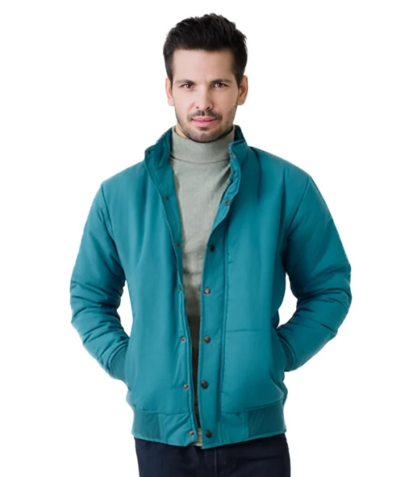 We constructed the shell from Premium High-Density Polyester, featuring a matte aquamarine finish designed to resist wind penetration and light precipitation. You get an industrial-grade Snap-Button Matrix and a High-Stance Stand Collar engineered for a 360-degree thermal seal. To ensure mobility, we installed high-tension rib-knit cuffs that lock in core heat while allowing for full-range articulation.