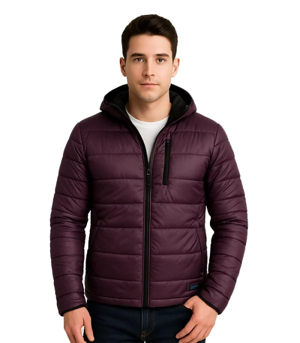 The Men’s Maroon Puffer Jacket with Hood is designed for those who require a functional layer that survives where traditional jackets fail. Most puffers use thin, low-density materials; we engineered this piece with **High-Loft Down Insulation** that traps body heat at the core, ensuring the thermal profile stays sharp even in high-wind environments.