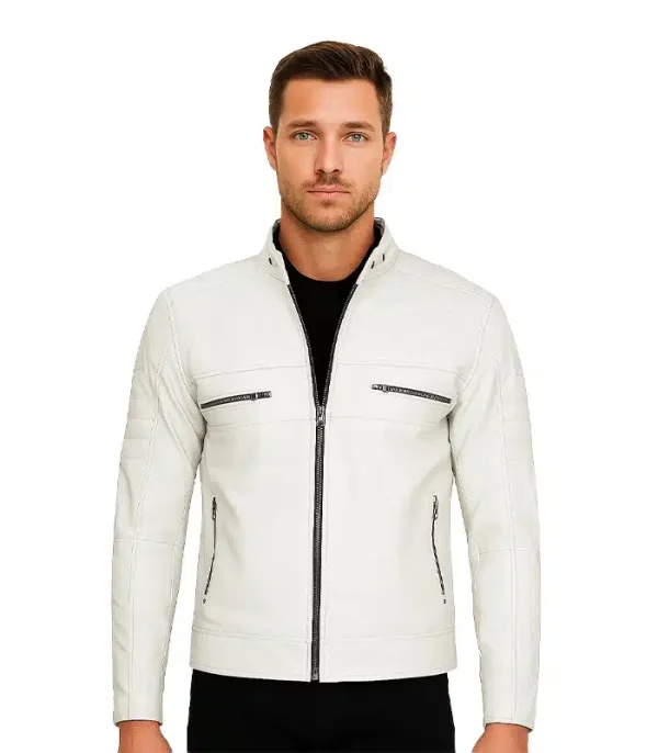 We treated the leather surface with a specialized sealant that resists light moisture and dust. While white leather requires care, this finish allows you to wipe off surface dirt with a damp cloth, preventing the “dingy” look that cheaper white jackets develop over time.