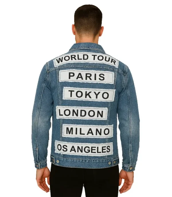 This Men’s World Tour Denim Jacket features a sophisticated Typographic Patchwork Matrix across the rear chassis, highlighting global fashion capitals. We utilized high-density indigo denim to ensure a superior vertical drape while the industrial-grade stitching ensures long-term resilience during urban transit.
