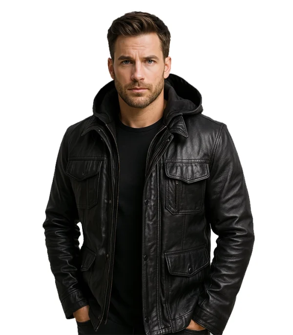 The Men’s Black Hooded Leather Field Jacket is designed for high-performance urban utility. While mass-produced jackets use thin skins that lose structure, we engineered this shield with a heavyweight lambskin chassis that retains its athletic profile and industrial resilience.
