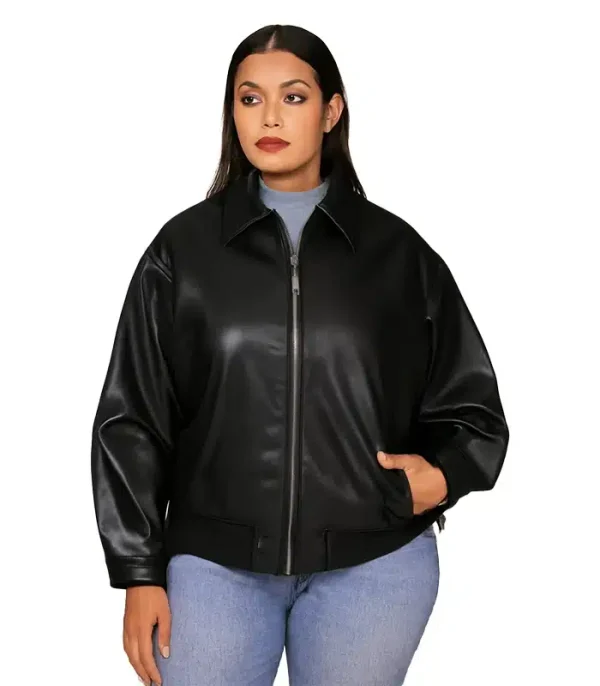 This Plus Size Black Leather Bomber Jacket features a Dual-Pocket Utility Matrix with secure side entries positioned for ergonomic access. We engineered the torso to follow a classic relaxed-fit bomber profile, providing a sharp fit without excess bulk.