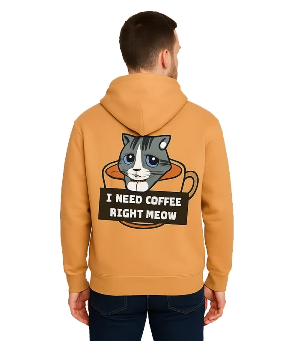 We utilized Premium High-Density Fleece to provide a robust thermal barrier for this Right Meow Coffee Cat Custom Hoodie. The shell is engineered to maintain its tan saturation while offering significantly higher structural strength than standard retail layers. The rear panel features a high-fidelity graphic that resists cracking and fading.