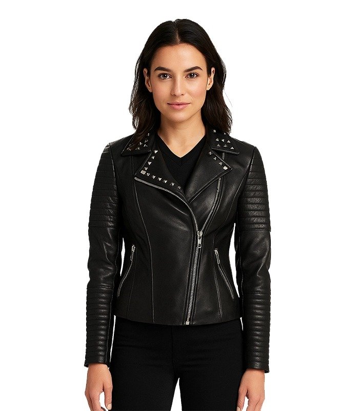 Sally Mae Studded Black Leather Biker Jacket