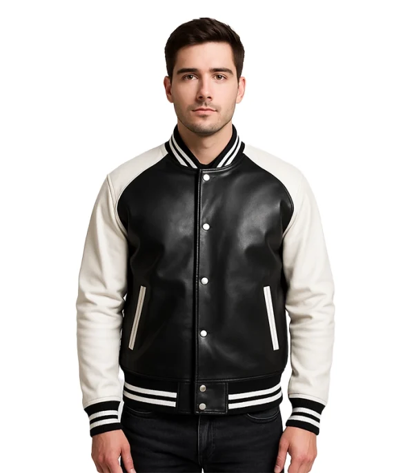 The Terrance Black and White Leather Varsity Jacket is the definitive statement piece for the modern vanguard. We focus on structural integrity, ensuring this full-leather chassis delivers a sharp profile without the flimsy feel of mass fast-fashion production.
