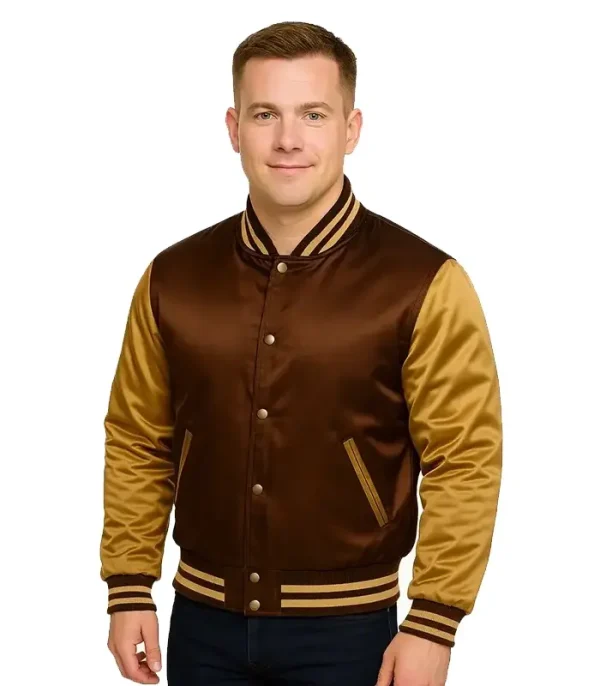 The Varsity Satin Jacket is a precision-tailored athletic piece designed for individuals who demand sharp urban lines and material-driven craftsmanship. We built this chassis from a premium chocolate brown satin core and gold satin sleeves to provide a structural silhouette that performs as a definitive urban layer.