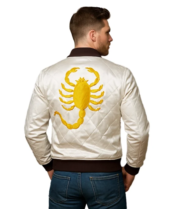 White Scorpion Satin Quilted Bomber Jacket For Men