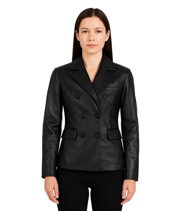 The Women’s Black Double-Breasted Leather Blazer is the definitive statement piece for the modern vanguard. We focus on structural integrity, ensuring this full-leather chassis delivers a sharp technical look without the flimsy feel of mass-market fashion production.
