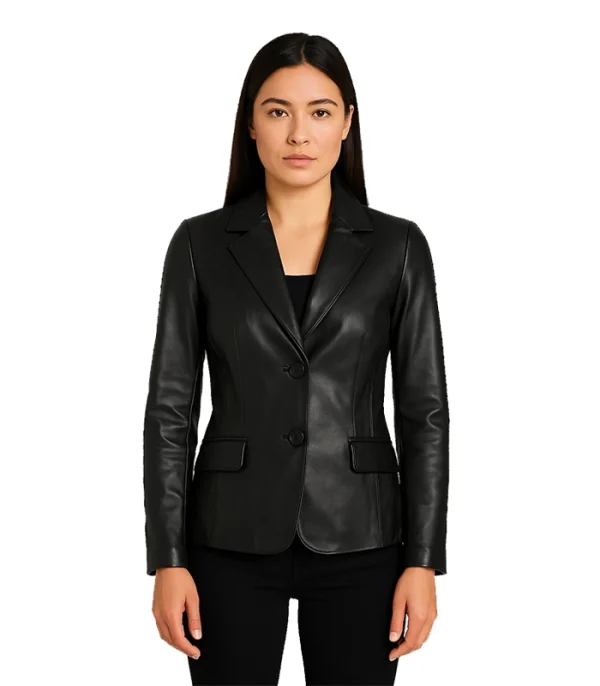 Women’s Black Two-Button Leather Blazer Jacket