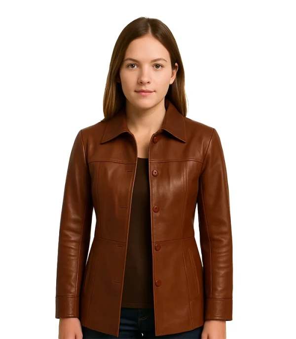 The Women’s Tall Shirt Collar Cognac Leather Coat is a precision-tailored professional piece designed for women who demand sharp executive lines and material-driven craftsmanship. We built this chassis from premium cognac leather to provide a structural silhouette that performs as a definitive urban layer.